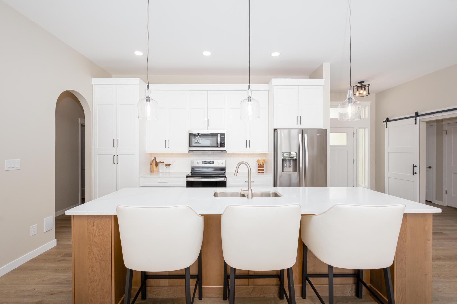 Efficient, luxurious, and warm are some of the feelings you get when you walk into this 1500-square-foot design. Designed for entertaining, this home features an open-concept kitchen with a 10-foot island, a hidden walk-in pantry, high-end craftsmanship, and attention to detail. In addition to the bright and spacious great room, the main floor includes three bedrooms (or two plus a sunroom), two bathrooms, a laundry room, and three walk-in closets. This plan also features an optional covered 12×14 ft deck and a triple car 31×26 garage.